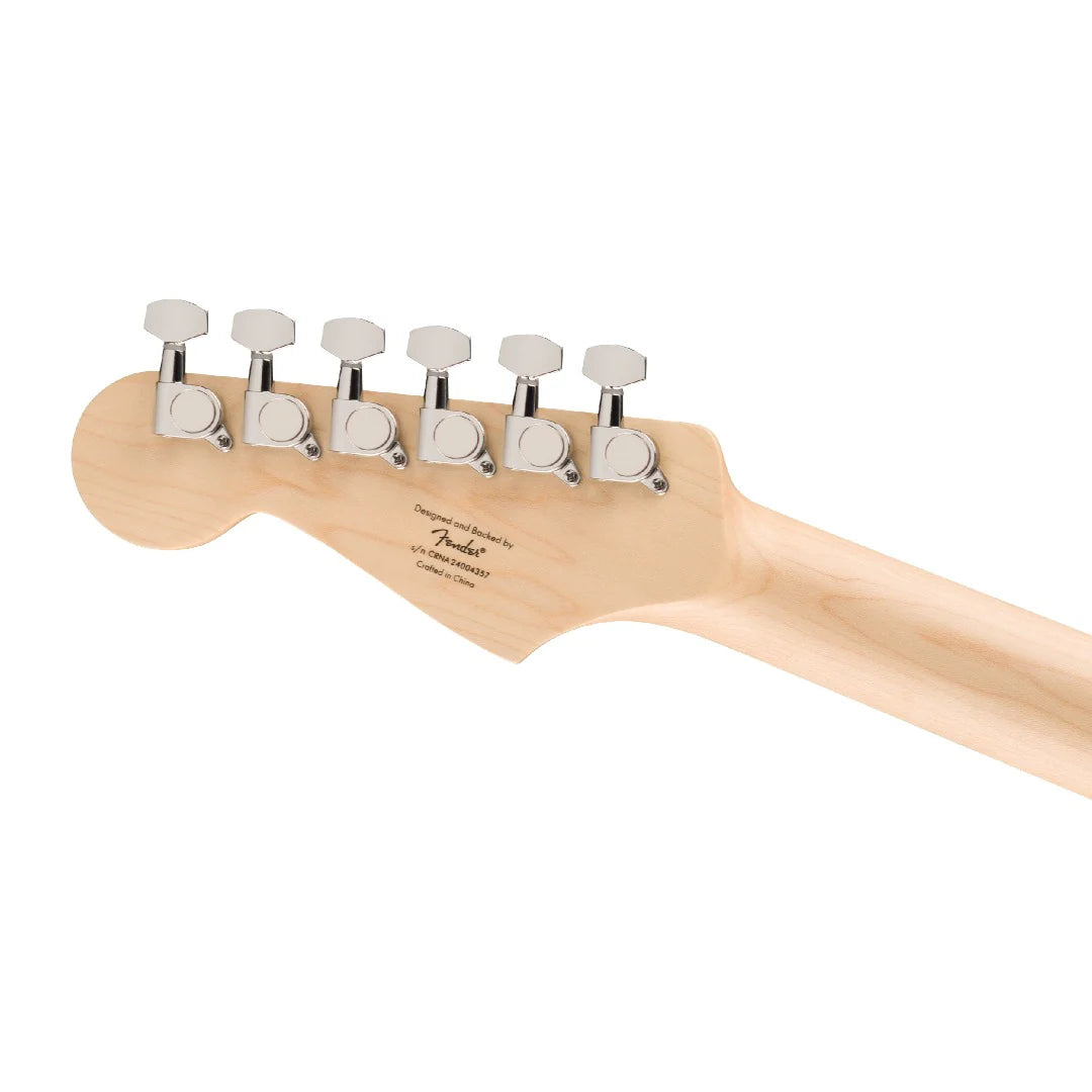 A superb gateway into the time-honored Fender® family, the Squier® Affinity Series® Stratocaster® delivers legendary design and quintessential tone for today's aspiring guitar hero. This Strat® features several player-friendly refinements such as a thin and lightweight body, a slim and comfortable "C"-shaped neck profile, a 2-point tremolo bridge for superior tremolo action and sealed die-cast tuning machines with split shafts for smooth, accurate tuning and easy restringing. Loaded with a trio of Squier single-coil Strat pickups with 5-way switching for genre-defying sonic variety, this model is ready to accompany any player at any stage.