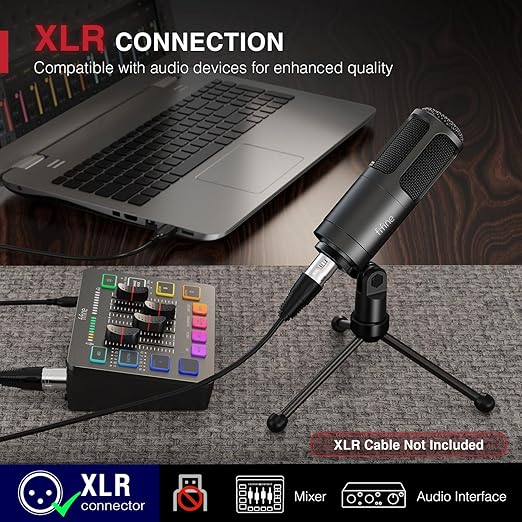 [Upgraded XLR Mic] XLR microphone with stability and anti-interference ability upgrades your recording audio performance. Reliable XLR connector paired with audio interface or mixer to work together brings your podcast or stream channel up a perspective notch. Podcast mic with audio flexibility for different types of gaming/vocal/singing gains more listeners and audiences. (Only available for XLR connection)